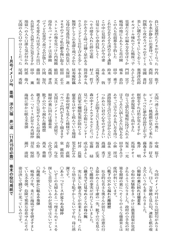 ◆イメージ吟の応募は本誌の投句用紙をお使いください◆